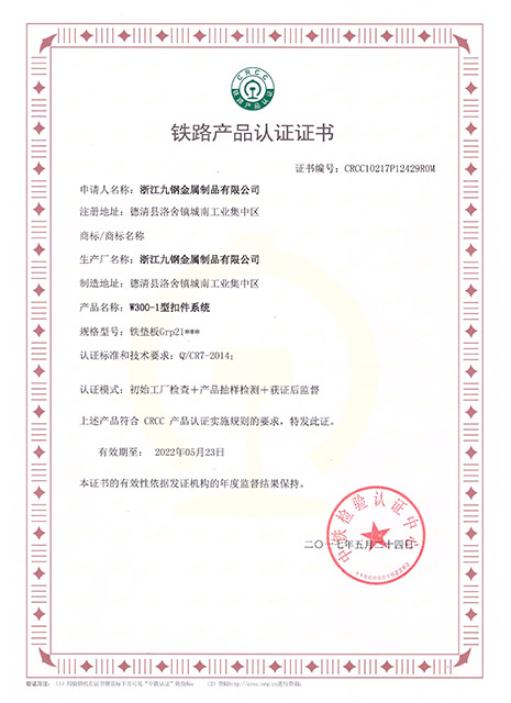 恭賀本公司于今年5月拿到鐵路產品認證證書